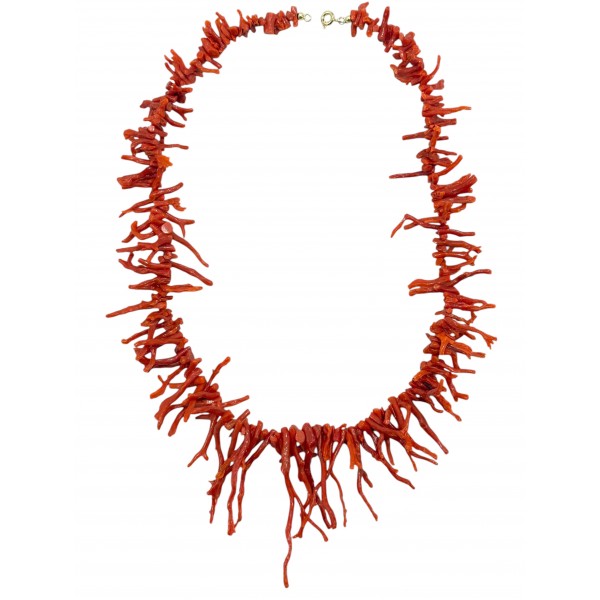Collana in rami di corallo rosso mediterraneo e chiusura in argento 925