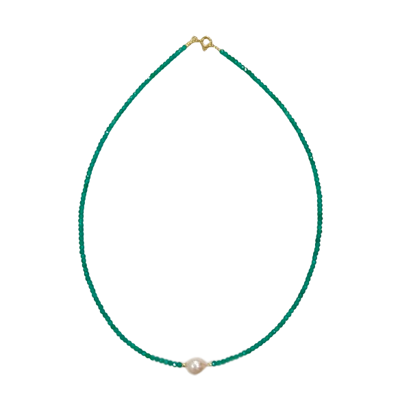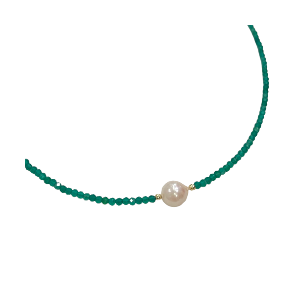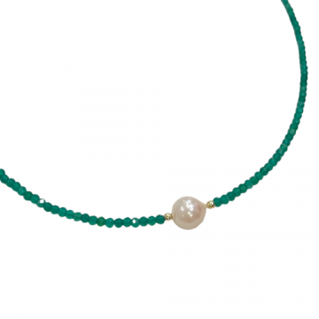 Girocollo-choker in agata verde, perla d'acqua dolce e argento 925 dorato