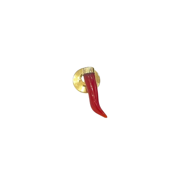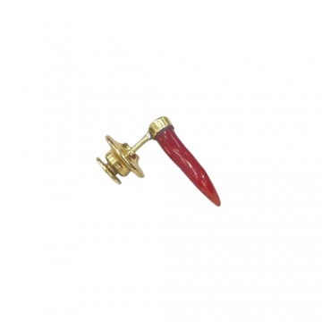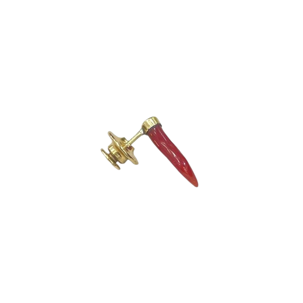 Spillo in corallo rosso naturale, oro 18k e chiusura in metallo dorato