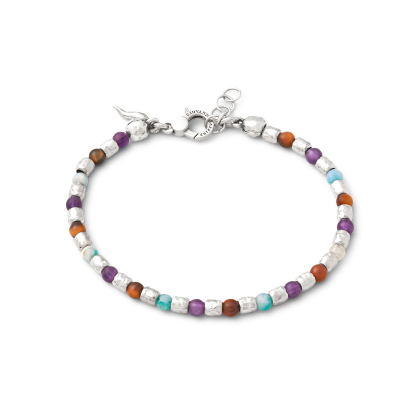 Bracciale in argento 925, hemimorphite, ametista e occhio di tigre