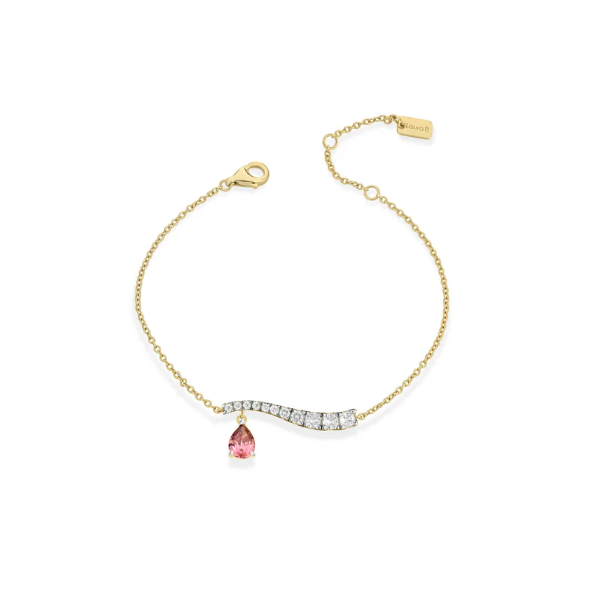 Bracciale in argento 925 dorato, zirconi bianchi e goccia di tanzanite