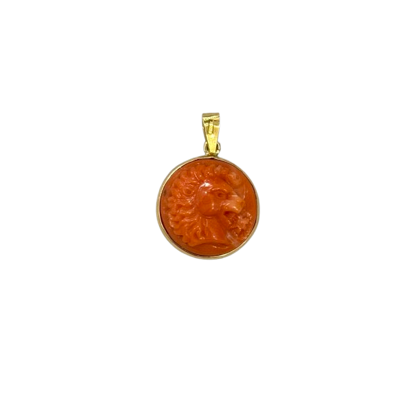 Ciondolo in corallo inciso a mano e oro 18k