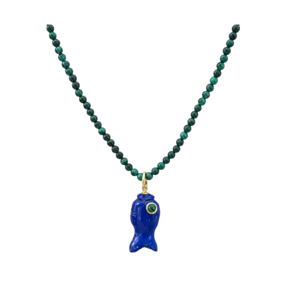 Collana in malachite, lapis e argento 925 dorato